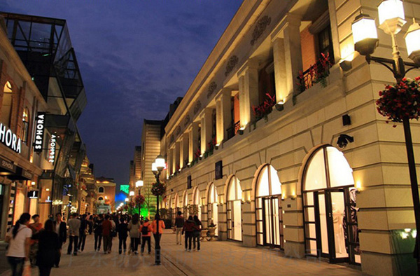 沿街建筑展示立面,營(yíng)造清晰明亮、華麗尊貴、溫馨浪漫的夜景燈光氛圍。照明偏向?qū)ν馍虡I(yè)氣氛的表達(dá);燈光對(duì)外具有吸引性。