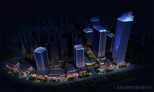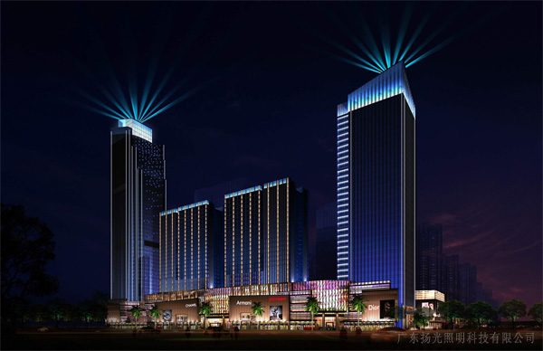 高層建筑頂部燈光打亮,突出建筑頂部輪廓,增強(qiáng)建筑的遠(yuǎn)觀效果,吸引遠(yuǎn)觀的客人。