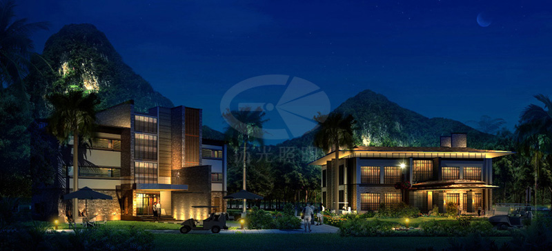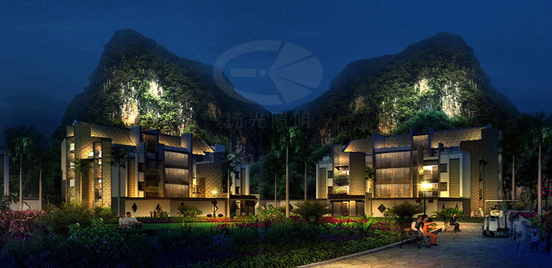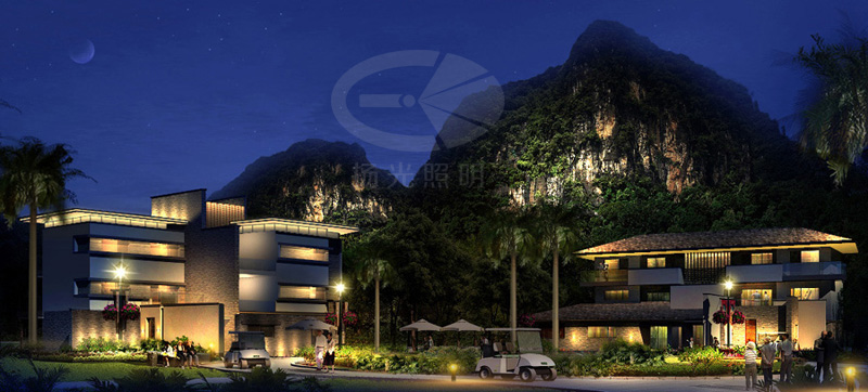 入口山體“樂養(yǎng)”字體燈光設(shè)計(jì)+山體燈光