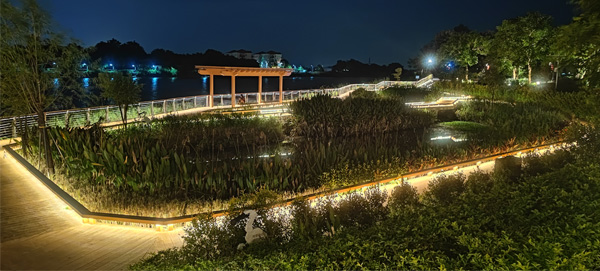 對(duì)沿湖景觀進(jìn)行照明,形成統(tǒng)一延伸的湖岸線。在親水平臺(tái)外,設(shè)置親水性的發(fā)光燈具,增添一定的游玩觀賞性和趣味性,營(yíng)造優(yōu)美,和諧的新鄉(xiāng)村環(huán)境。