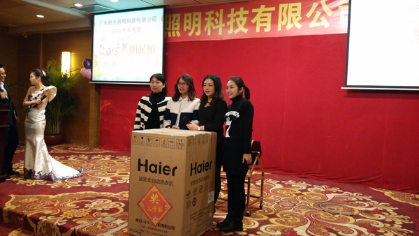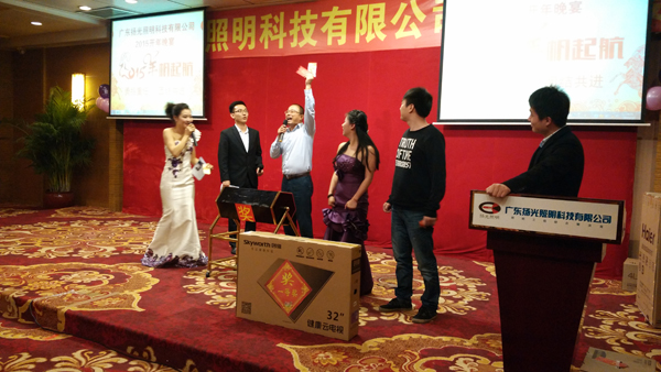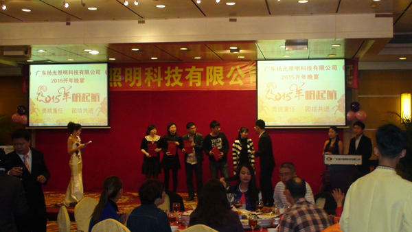 喜悅伴著汗水,成功伴著艱辛,遺憾激勵(lì)奮斗,我們不知不覺地走進(jìn)了2015年。在元宵佳節(jié)來臨之際,揚(yáng)光照明開年晚宴在東莞會(huì)展酒店隆重舉行,揚(yáng)光照明總經(jīng)理李總,全國多個(gè)分公司負(fù)責(zé)人、全體員工及員工家屬共同出席。 美味的晚宴中伙伴們與家屬共同觀看了揚(yáng)光照明給大家?guī)淼墓?jié)目,節(jié)目內(nèi)容精彩紛呈。