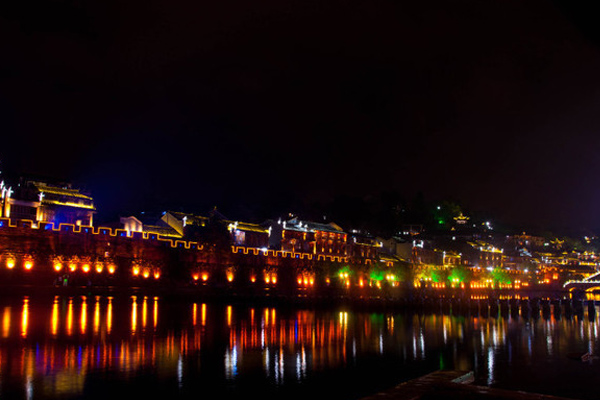 最后的旅游景點(diǎn)是鳳凰古城,常聽去過的人說:來鳳凰不僅要欣賞沱江兩岸若思迷幻的日景,更要欣賞沱江兩岸璀璨迷人的夜景,否則,你不算來過鳳凰。果不其然,鳳凰之美,一半在于夜景,隨著夜晚的降臨,風(fēng)凰古城到處燈火輝映,沱江邊的吊腳樓倒影在水中,萬名塔和虹橋通體金黃,金碧輝煌如天上宮闕,兩相輝映,人間天堂。