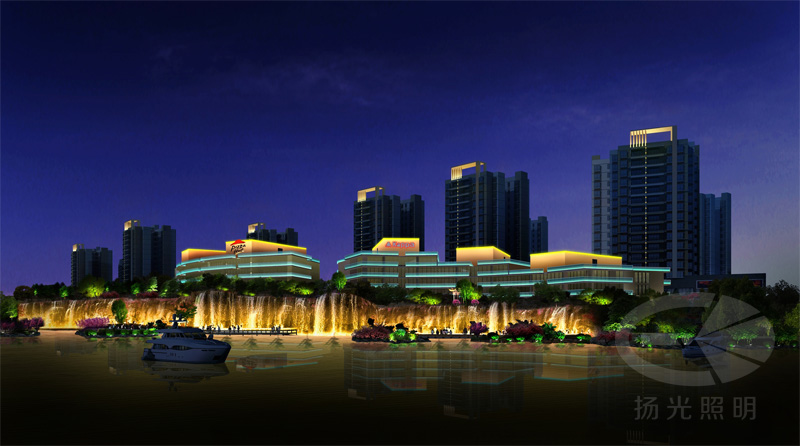 如果是大江大河之類的自然水景,不可能將整個(gè)水面點(diǎn)亮,所以主要采取反射岸邊景物,用來(lái)凸顯水體的存在和景觀。增加水體的觀賞性,營(yíng)造夜景的氛圍,一般選用造型別致、隱藏性好的LED作為自然水景的燈具。
