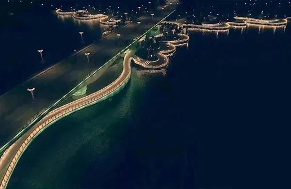 “波光瀲滟、百花擁簇”,通過(guò)燈光表現(xiàn)海面獨(dú)有的自然意境以及海花橋梁的形象特色。