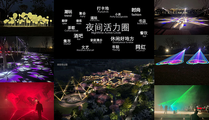 在方案設(shè)計(jì)過程中,我們首先從項(xiàng)目場地總體規(guī)劃的角度出發(fā),深入了解各地塊的區(qū)域功能、定位,使燈光系統(tǒng)盡可能考慮到所有地塊內(nèi)容,使其整體統(tǒng)一且獨(dú)具各自主題特色。我們特別注重于燈光環(huán)境對視覺生理的支持,用燈光創(chuàng)造可辨識的夜間環(huán)境;亮度、照度等量化指標(biāo)的給出有堅(jiān)實(shí)的理論基礎(chǔ),并與實(shí)際相符合。同時利用燈光對景觀結(jié)構(gòu)進(jìn)行重組,使其成為感知環(huán)境特色的工具。整體布局上呈現(xiàn)多元、有活力的夜景形態(tài),適應(yīng)多種夜間活動的需要。